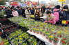 市民在年宵市场选购年花。