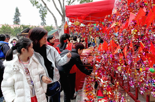 不少市民光顾车公诞市场售卖风车及香烛的摊档。