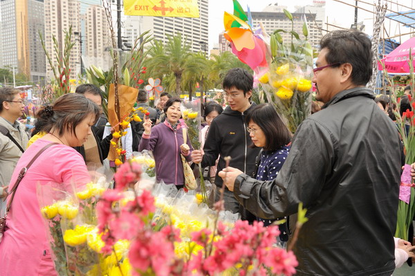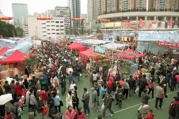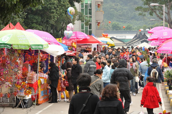 林村的新春市场众多摊档售卖风车及其他农历年装饰摆设。