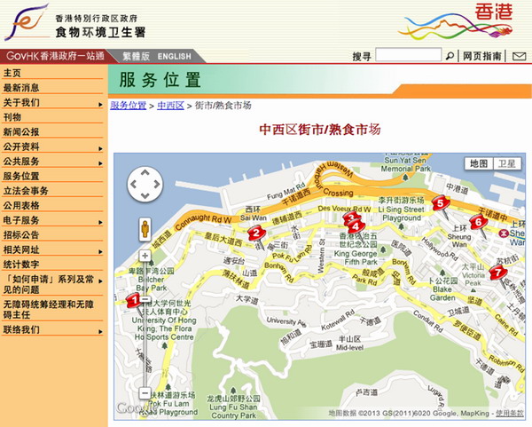 新推出的电子服务让市民可在食环署的网页,透过Google地图搜寻部门的服务地点及其他相关资料。