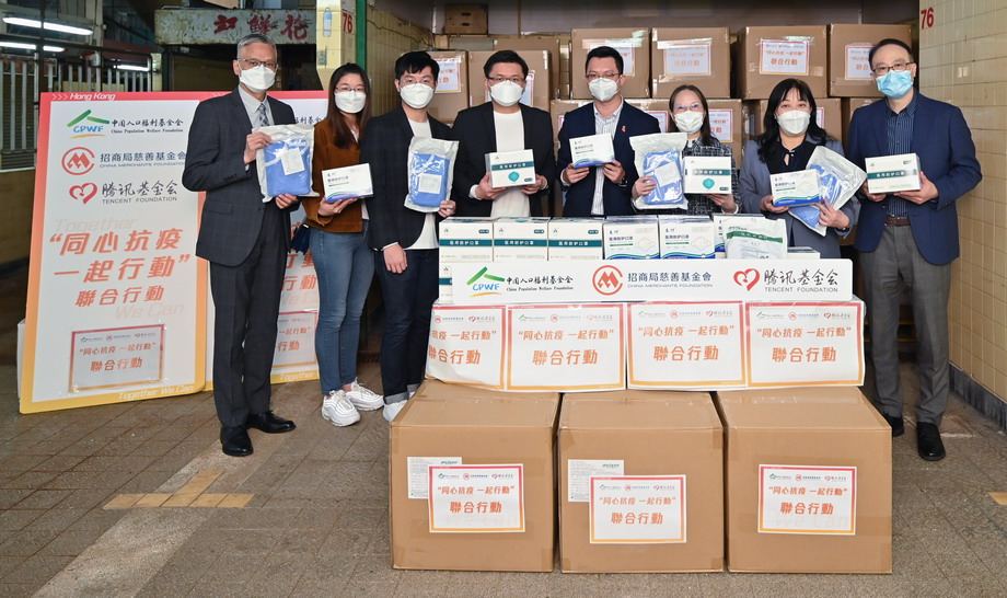 有見及殯儀業從業員為逝者及其親屬提供殯葬服務的重要性及須應付近日急增工作量的迫切需要,善心機構向殯儀業從業員捐贈抗疫物資(包括快速抗原測試包、KN95口罩及保護衣),以協助他們遵行政府及醫院管理局的指引,並希望有關抗疫物資可解殯儀業從業員燃眉之急,讓業界可爭取更多時間採購所需的個人防護裝備。在2022年4月1日,勞福局副局長何啟明太平紳士及食環署副署長(環境衞生)黃淑嫻太平紳士向中國人口福利基金會、招商局慈善基金會及騰訊基金會代表表達深切謝意。