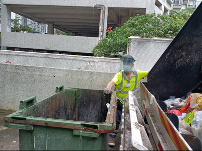 清潔工人將垃圾運上垃圾收集車