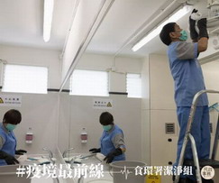 在街道潔淨工作方面,部分地區的前線清潔工人不乏泰國、尼泊爾及其他國籍人士,因此在為確診人士的住宅附近的公眾街道徹底清洗及消毒時,食環署潔淨組的員工須克服語言障礙,向每名潔淨工人詳細解釋工作程序,並指導他們正確穿戴防護裝備,確保每名工人在足夠保護下進行消毒工作。完成後亦會耐心指導潔淨工人卸除防護裝備的正確次序,以免他們受到感染。