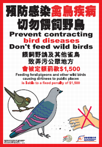 有些市民因著善心或信仰而餵飼野生雀鳥,惟不當餵飼野鳥而弄污公眾地方除觸犯法例外,還會引致野鳥聚集而對周遭帶來環境衞生問題及傳播禽流感的風險。