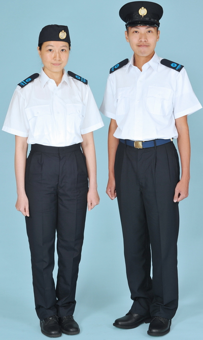 圖示高級管工(左)及管工配上新肩章及換上白色襯衫的新夏季制服。