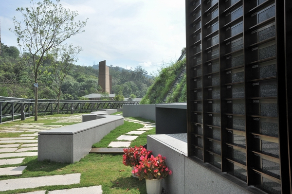 該紀念花園內種滿花草,景緻秀麗,環境靜謐,並豎立了可以鑲嵌先人牌匾的紀念碑牆。