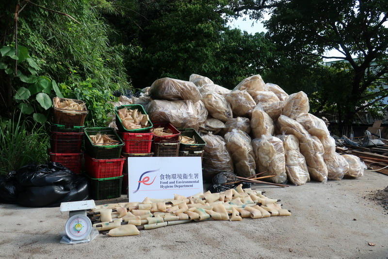 行動中,食環署人員檢獲約二千三百公斤擬供人食用的豬皮及一批工具。一名二十六歲男子被捕,被控經營無牌食物製造工場及沒有保持食物業處所清潔。