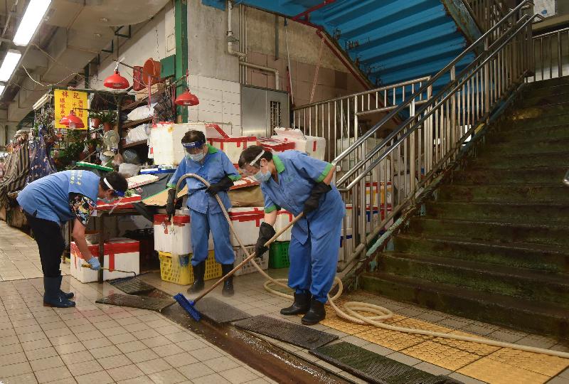 食環署發言人表示,一直關注公眾街市的衞生情況,除日間的恆常清潔工作外,街市管理服務承辦商於每日街市關閉後均會在各街巿進行徹底清潔。疫情期間,食環署已加強街市公用地方及設施的清潔及消毒工作,包括廁所、自動扶手梯、升降機、樓梯扶手等的清潔,每天定時使用稀釋家用漂白水消毒,亦已於街市範圍內放置消毒搓手液供市民使用。