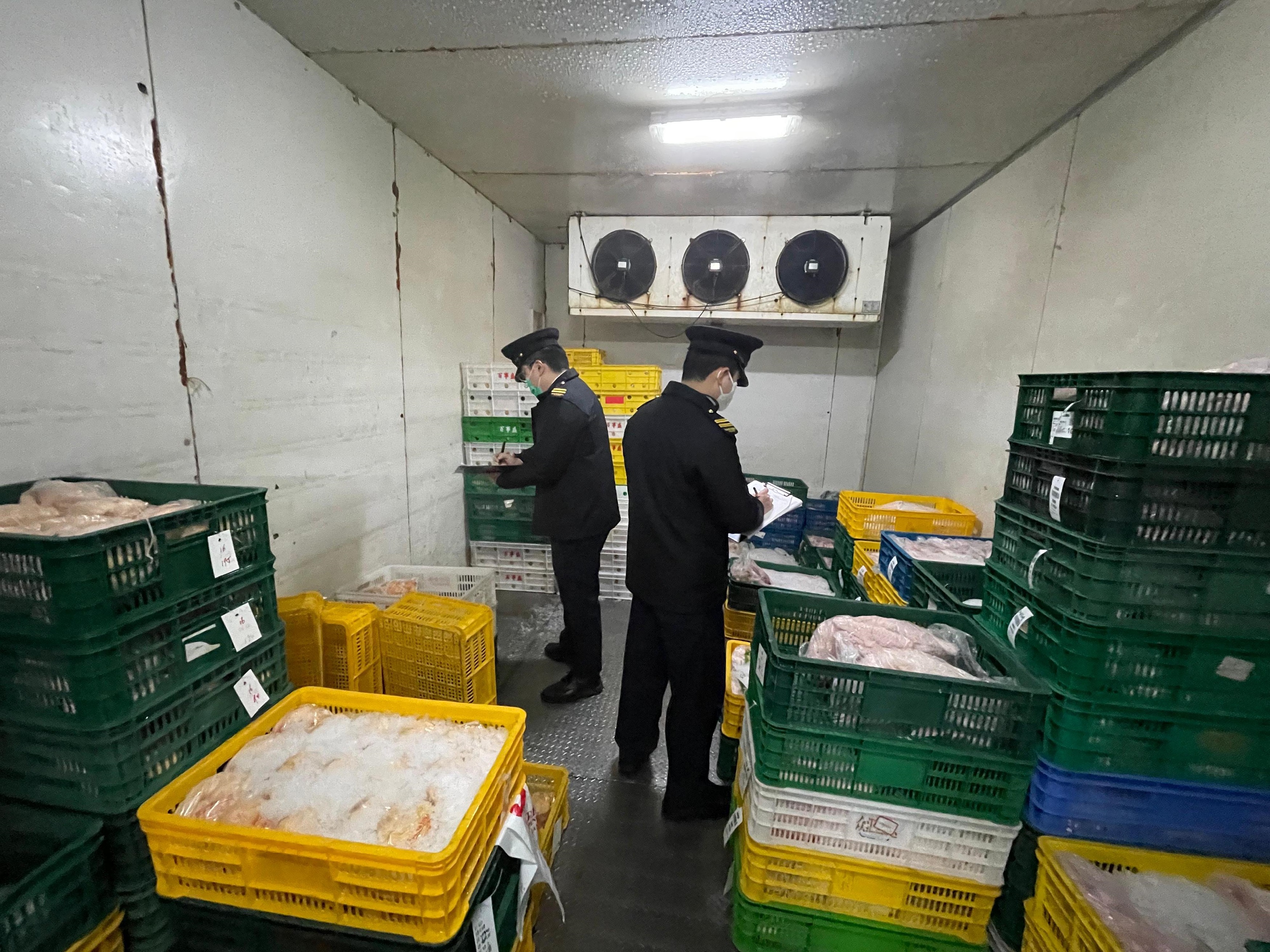 行動中,食環署拘捕一人,就涉嫌經營無牌凍房展開檢控程序,並在該處所檢獲約6,956公斤附有衞生證明書的冰鮮禽肉,以及約173公斤沒有衞生證明書的冰鮮家禽和內臟,並已銷毀。