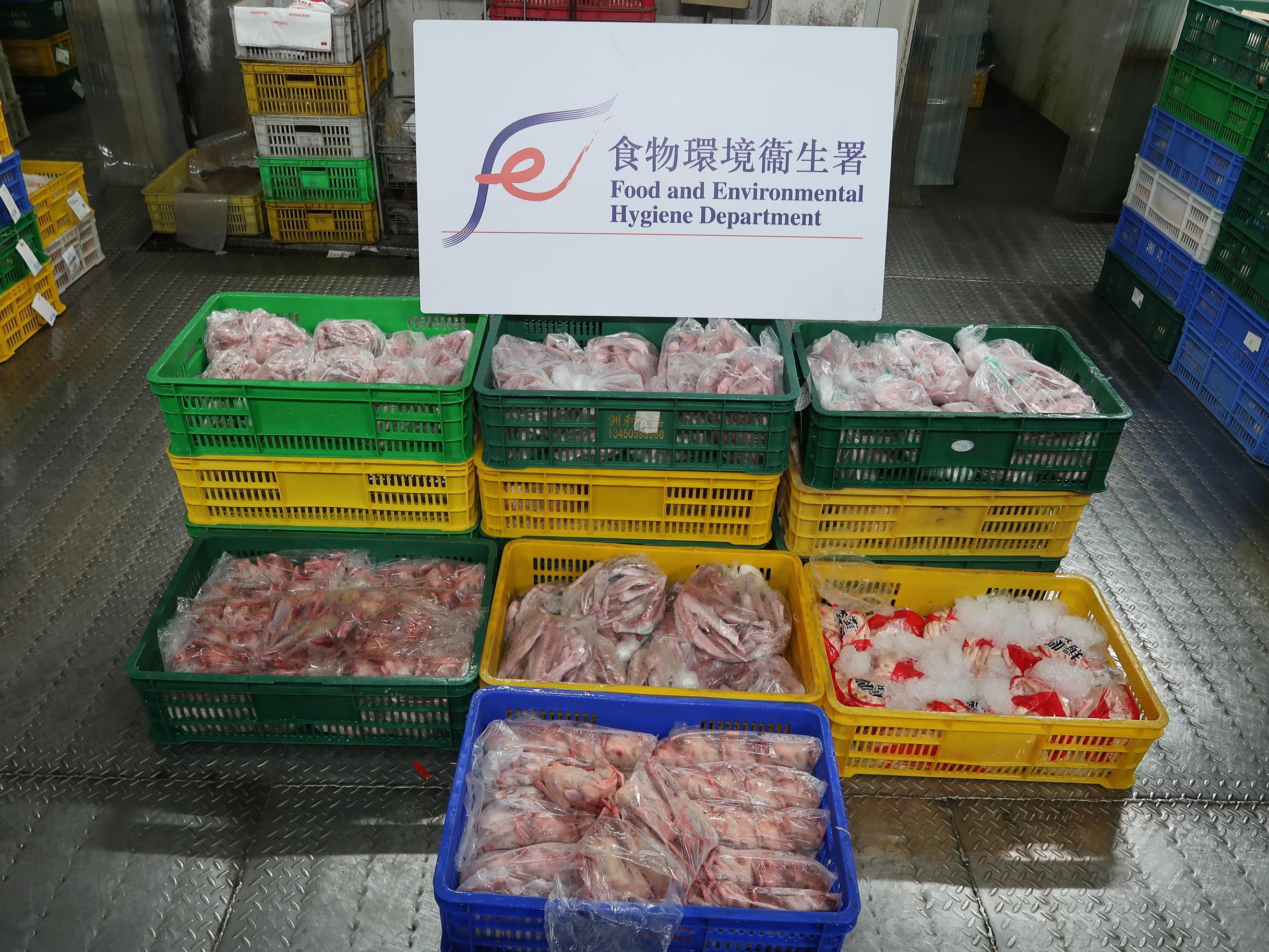 食物環境衞生署昨日(二月十八日)晚上在元朗大樹下西路搗破一間無牌凍房。圖示行動中檢獲的部分禽肉。