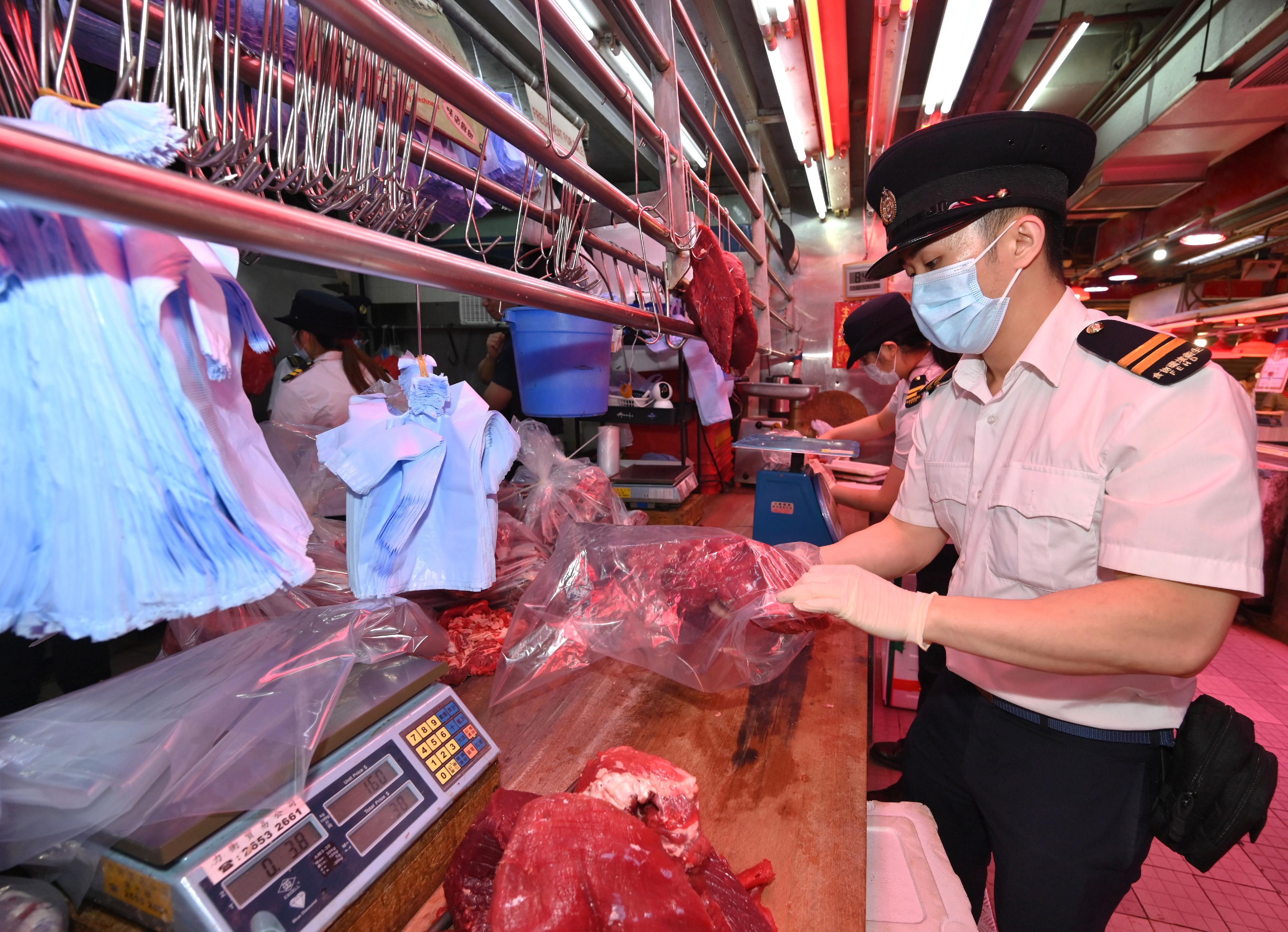 食環署就以冰鮮或冷藏肉充當新鮮肉出售採取執法行動(附圖)