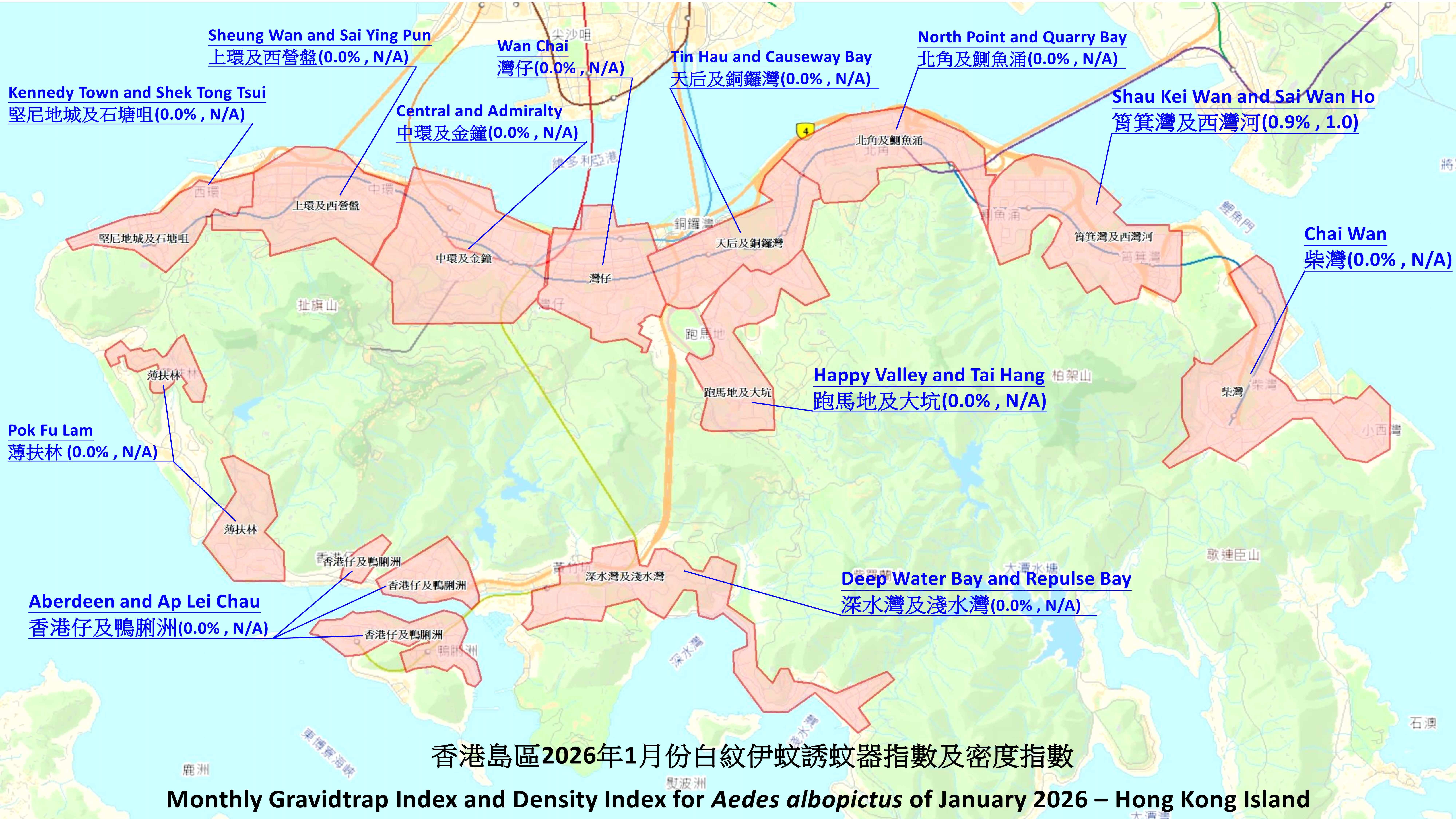| 上環及西營盤 | 分區誘蚊器指數 | 0.0 | ||||||||||||