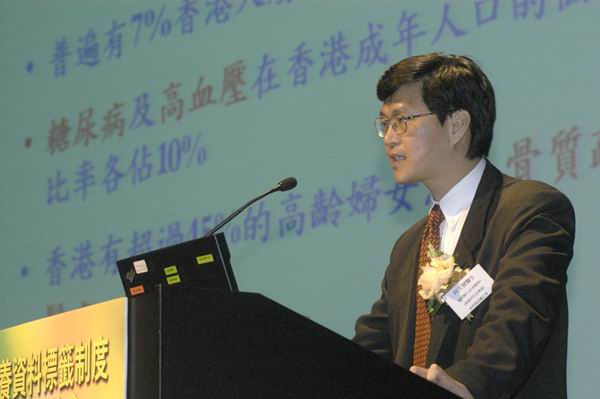 Dr Ho Yuk-yin, Consultant (Community Medicine) (Risk Assessment and Communication) explains the Nutrition Labelling Scheme at a public forum.