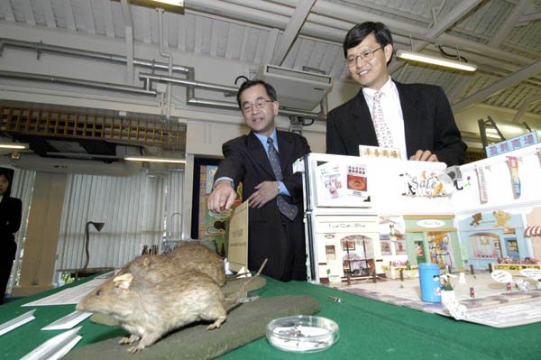 Anti-rodent measures are outlined to the media by Dr Ho Yuk-yin, Consultant (Community Medicine) (Risk Assessment and Communication)(right) and Mr Yuen Ming-chi, Pest Control Officer In-charge.