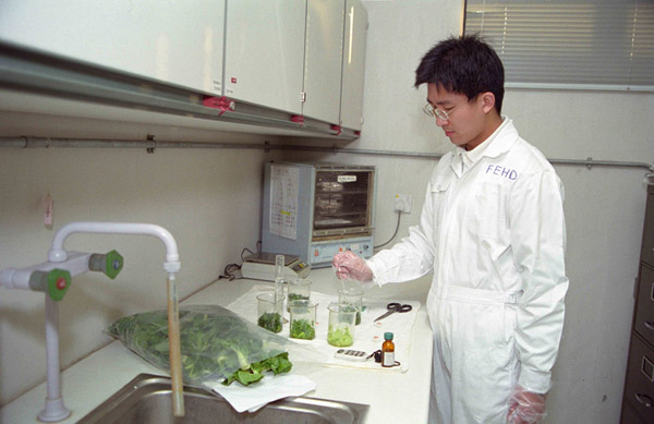 文錦渡食物化驗所對蔬菜殘餘農藥進行測試。