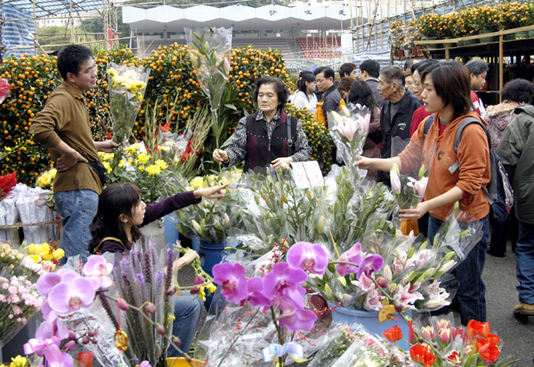 A blaze of colour attracts customers at a Lunar New Year Fair.