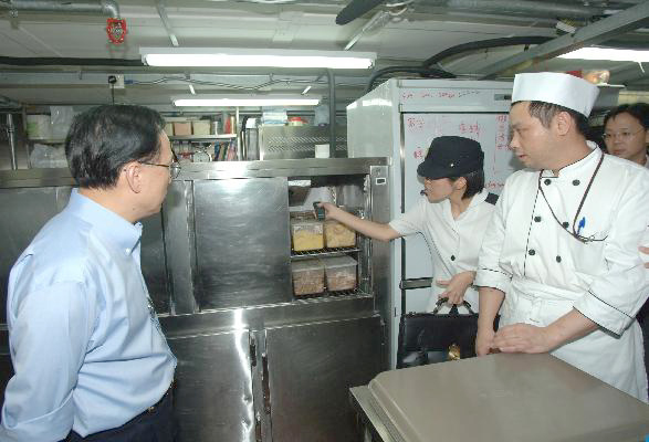Chief Executive Donald Tsang is given a first hand look at how the FEHD conducts its inspections of food premises.