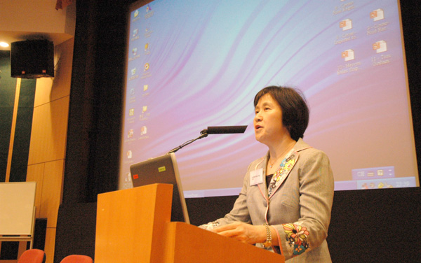 食物環境衞生署副署長麥倩屏醫生在動物疾病與公共衞生工作坊上作專題演講。