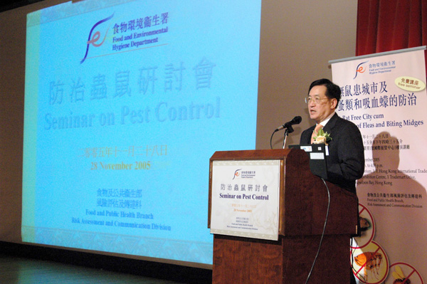 Dr York Chow, Secretary for Health, Welfare and Food, addresses a pest control seminar.