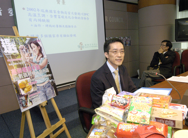 食物安全中心和消費者委員會舉行記者會,公布油炸及烤焗食品的丙烯酰胺含量研究結果。