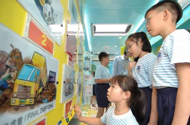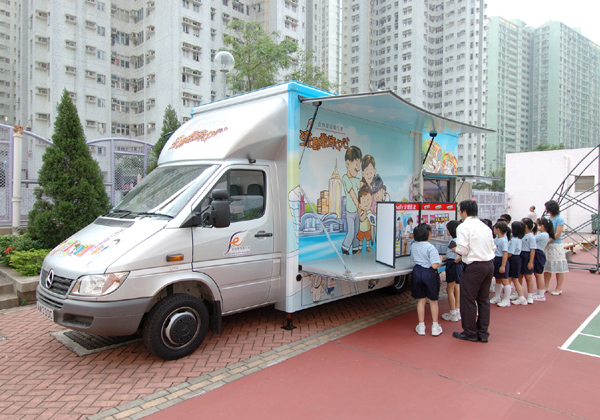 本署的宣傳車輛 ( 流動教育中心 ) 投入服務,加強向市民推廣食物安全和環境衞生的外展工作。