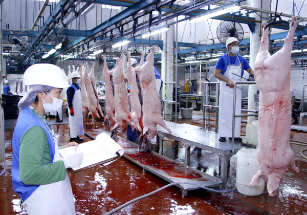 食環署在屠房加強對豬隻在屠宰前後的檢查。