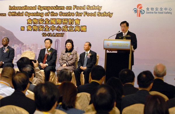 食物及衞生局局長(前稱衞生福利及食物局局長)周一嶽在食物安全國際研討會上致辭。