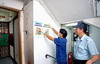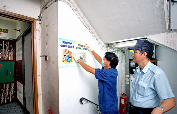 食環署職員張貼海報宣傳預防鼠患。