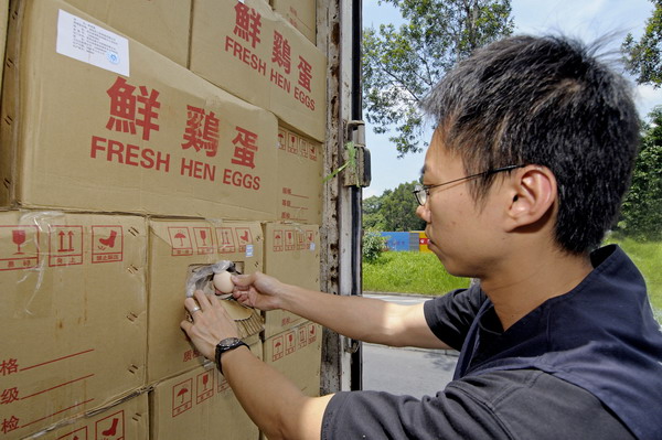 食物安全中心職員檢查入口鮮雞蛋。