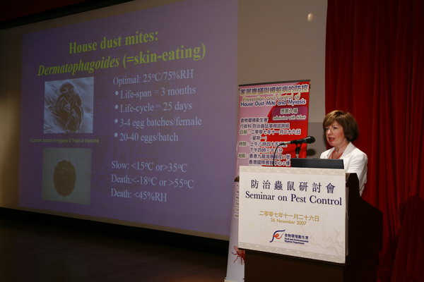 專家講者在防治蟲鼠研討會上介紹塵蟎。