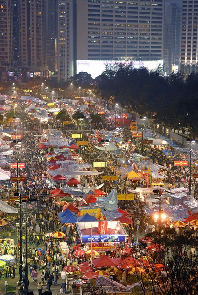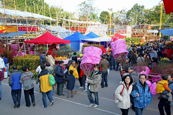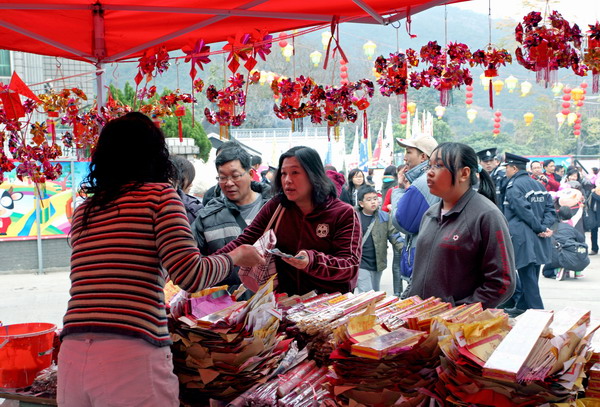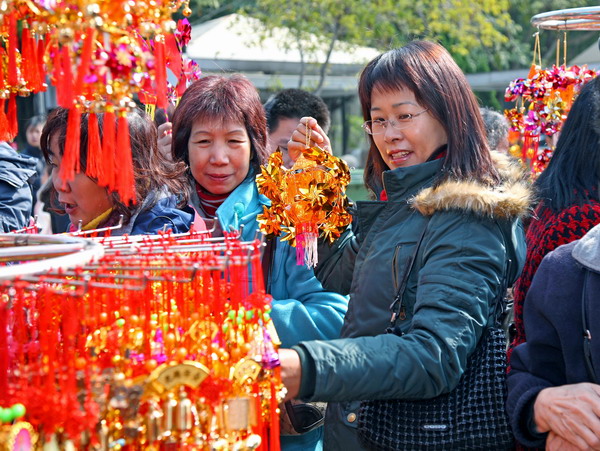 市民於車公誕市場選購寓意吉祥的裝飾品。