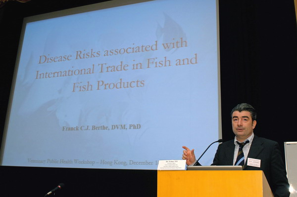 專家於"魚類及魚類製品入口管制"獸醫公共衞生工作坊上發言。