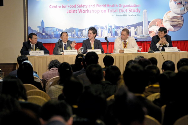 食物安全中心聯同世界衞生組織舉辦的總膳食研究工作坊上,講者與參加者分享進行總膳食研究所需的知識和技巧。