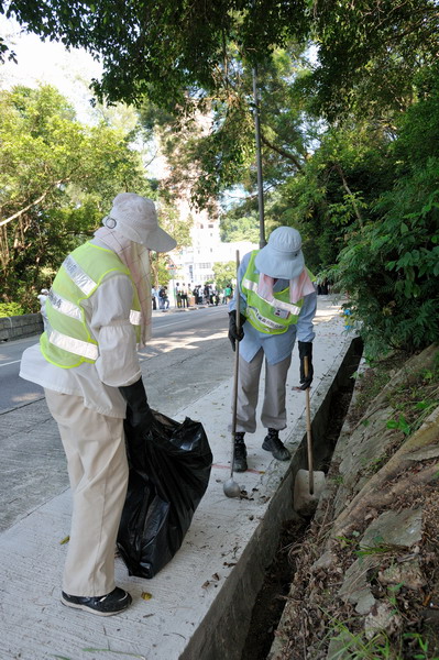 防治蟲鼠人員清理溝渠,以防蚊子在積水中滋生。