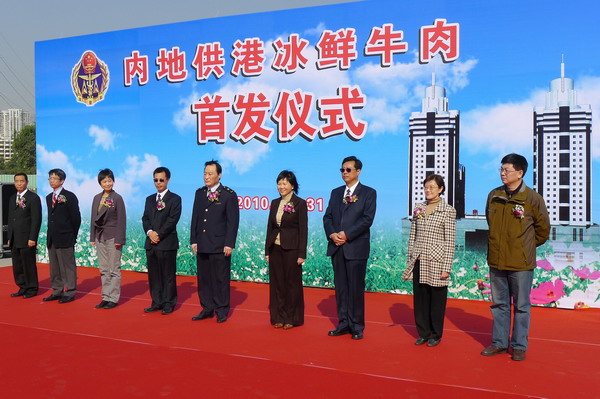 首批內地進口冰鮮牛肉供港啟動儀式在深圳南山農產品批發市場舉行。