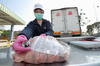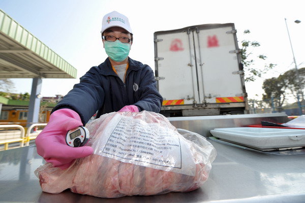 食物安全中心人員檢測冰鮮牛肉的溫度,確保它貯存在攝氏零至四度之間。