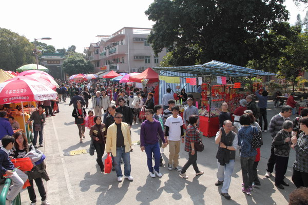大埔林村的新春市場眾多攤檔售賣農曆年裝飾擺設。