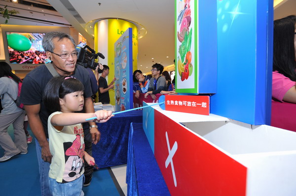 小朋友投入參與食物安全日2013的攤位遊戲。