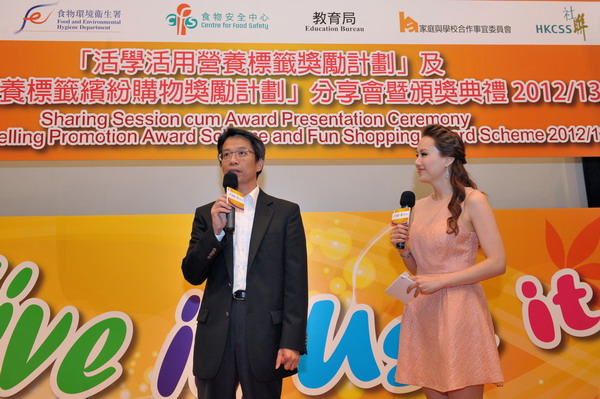 食物環境衞生署署長梁卓文在「活學活用營養標籤獎勵計劃」及「活用營養標籤繽紛購物獎勵計劃」分享會暨頒獎典禮上致辭。