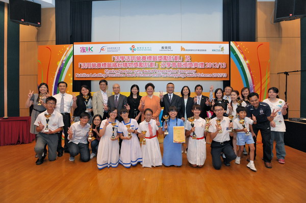 「活學活用營養標籤獎勵計劃」及「活用營養標籤繽紛購物獎勵計劃」得奬者與大會嘉賓合照。