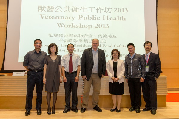 參與食物安全中心舉辦的"獸醫公共衞生工作坊2013"的專家一起合照。