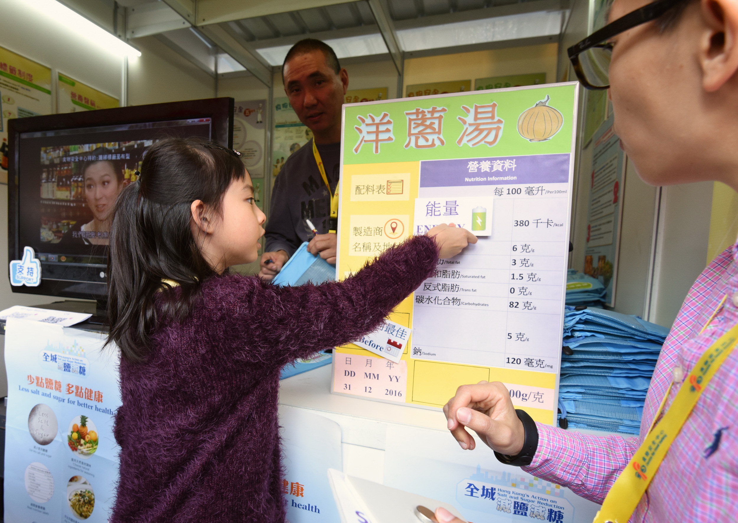 食物安全中心在第52屆工展會設置攤位,向市民宣傳食物安全及"全城減鹽減糖-睇標籤食醒啲"計劃。