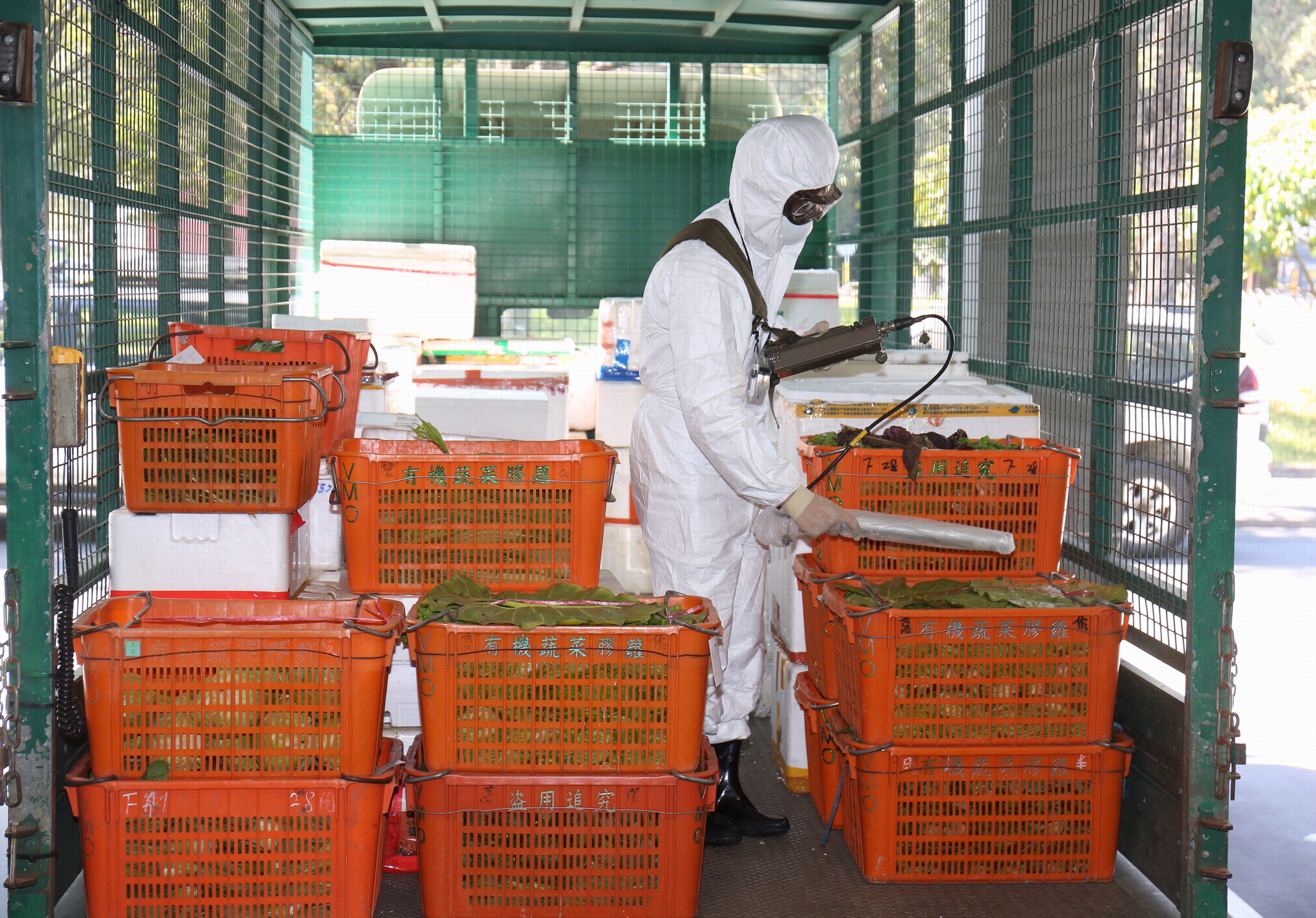 食環署人員參與大型跨部門演習"棋盤二",期間對內地進口食物進行輻射監測。該演習的目的是測試政府對嚴重核事故的應變能力。